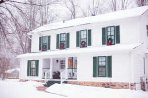 The Inn’s 7 guest rooms have antique furnishings, a view of the river and/or woods, and a nook for reading or visiting. Guest rooms include private baths and most rooms include a fireplace. Two first floor rooms each have a private entrance, a double whirlpool tub and fireplace.