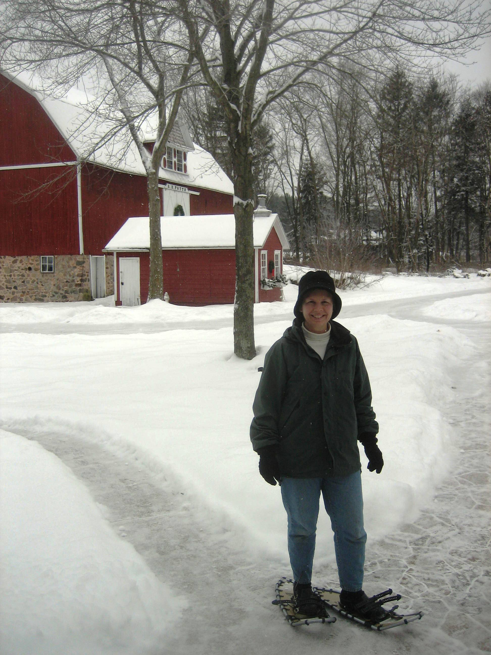 I just finished shoveling 4 inches of fresh powder this morning and put on my snowshoes to show you the beautiful scenery. Conditions should be great for the Candlelight Ski and Hike tomorrow. Robert and I will be there so we’d love to have you join us! There’s room at the inn if you want to stay with us . . .