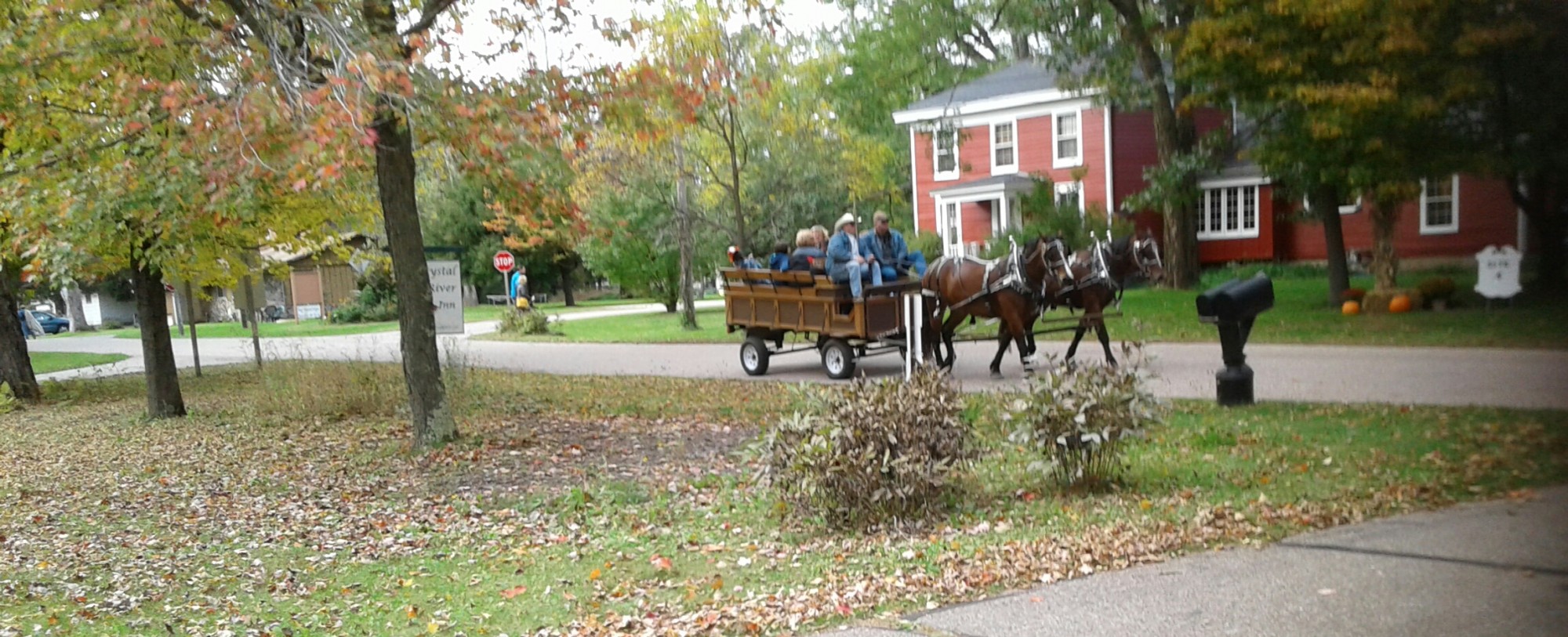 Here, in front of the inn, goes the horse-drawn wagon transporting visitors around the village.